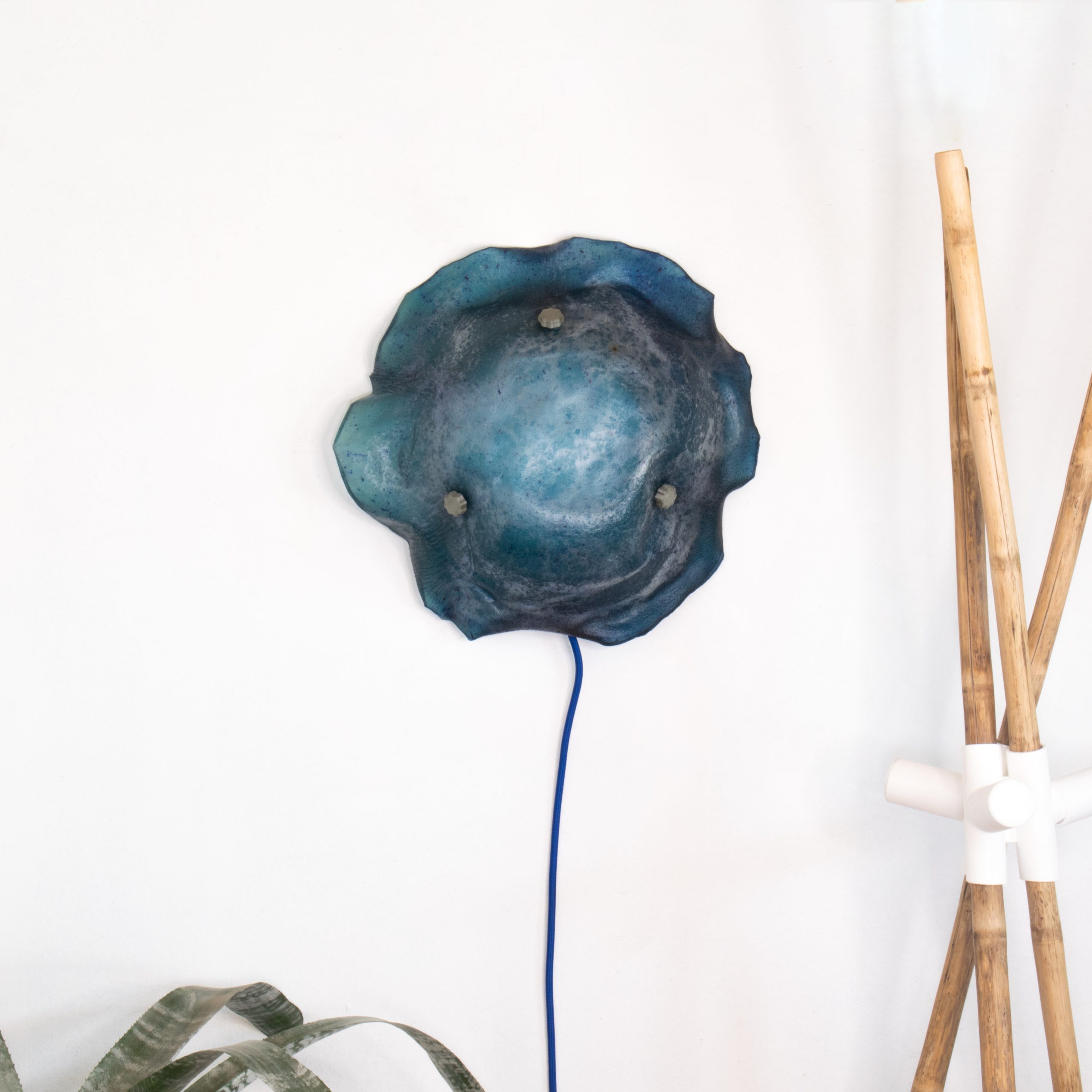 Esta lámpara pertenece a la colección Luz del mar, que consta de una serie de luminarias hechas en base a un biomaterial hecho en base a algas marinas chilenas. Una serie única que otorga una iluminación muy cálida y acogedora, rescatando la belleza de este bioplástico hecho en un proceso productivo muy particular.